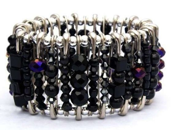 12- Con imperdibles. Y muchas cuentas y abalorios, todas en tonos negros, que junto al plateado, consiguen un acabado ¡de lujo!