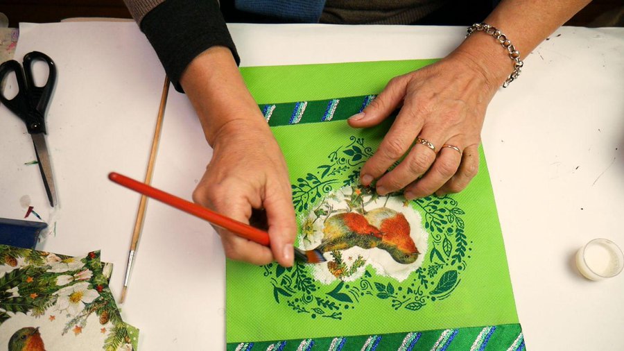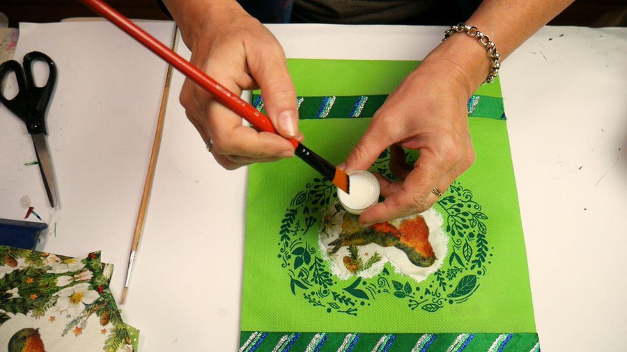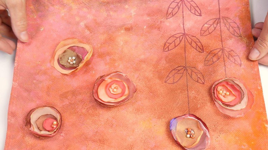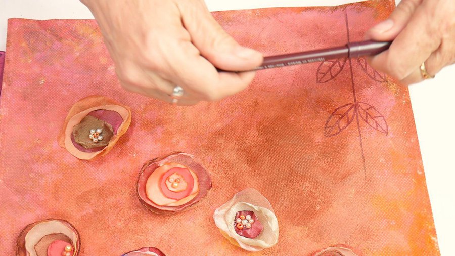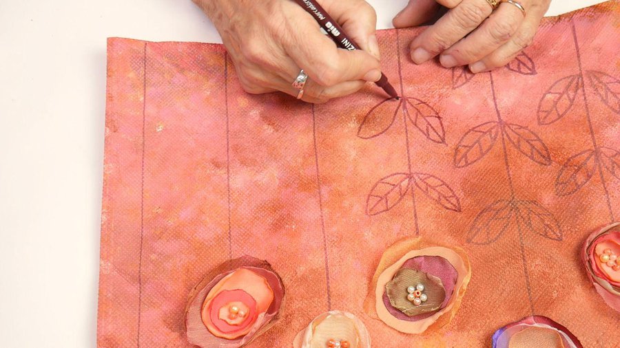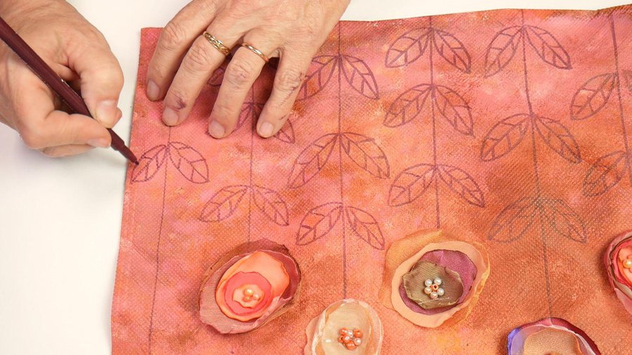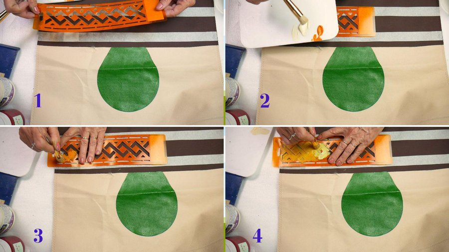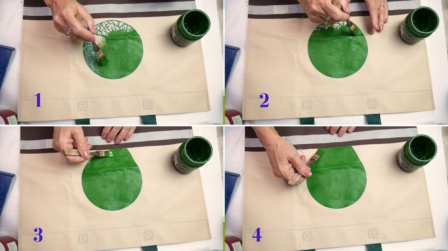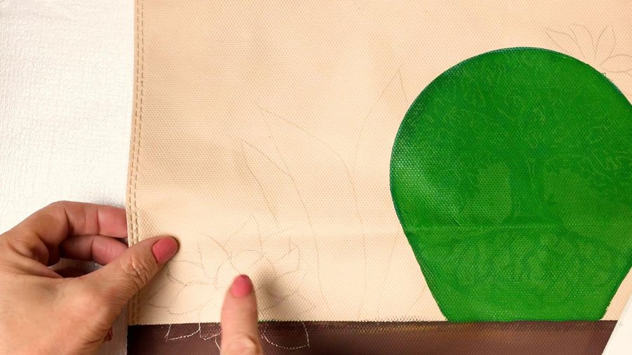 Pueden emplear pinturas acrílicas, pinturas a la tiza, pinturas látex o pintura para telas. La separación entre las hojas se hace con sombras con color chocolate.