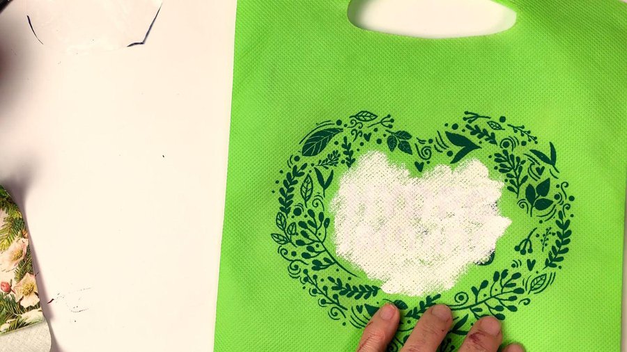 Pinto con pintura acrílica blanca el interior del corazón de la bolsa.