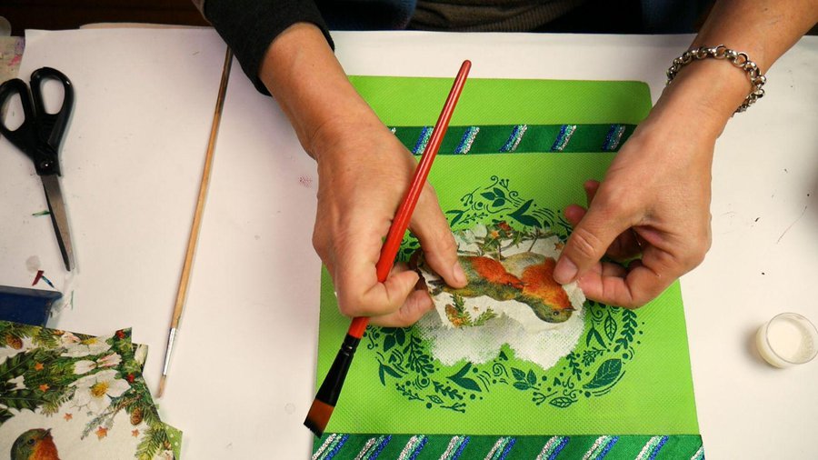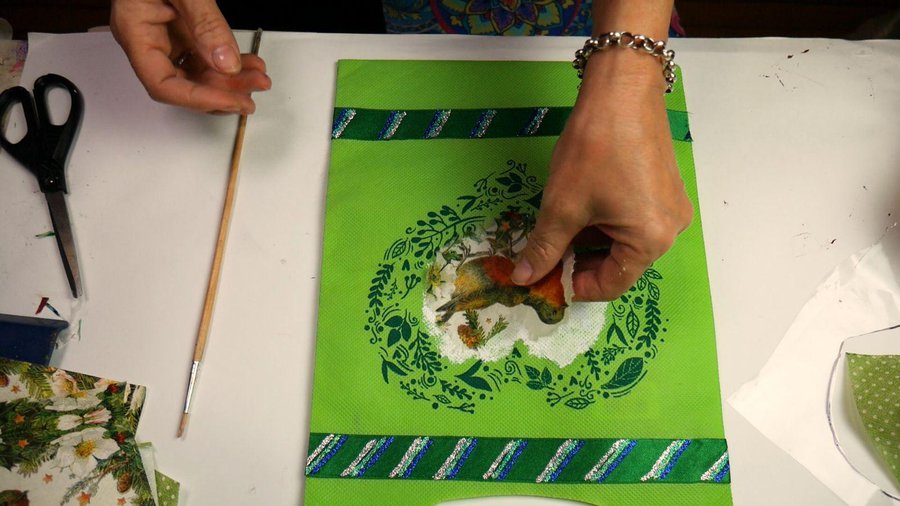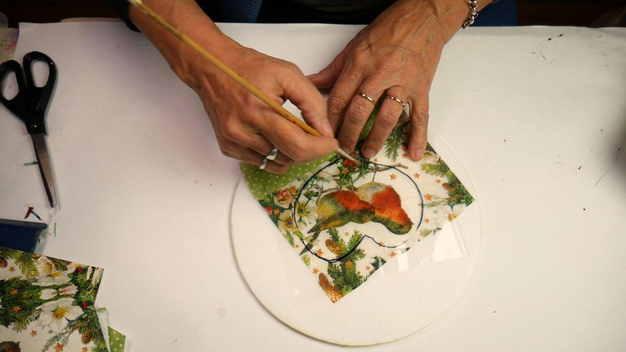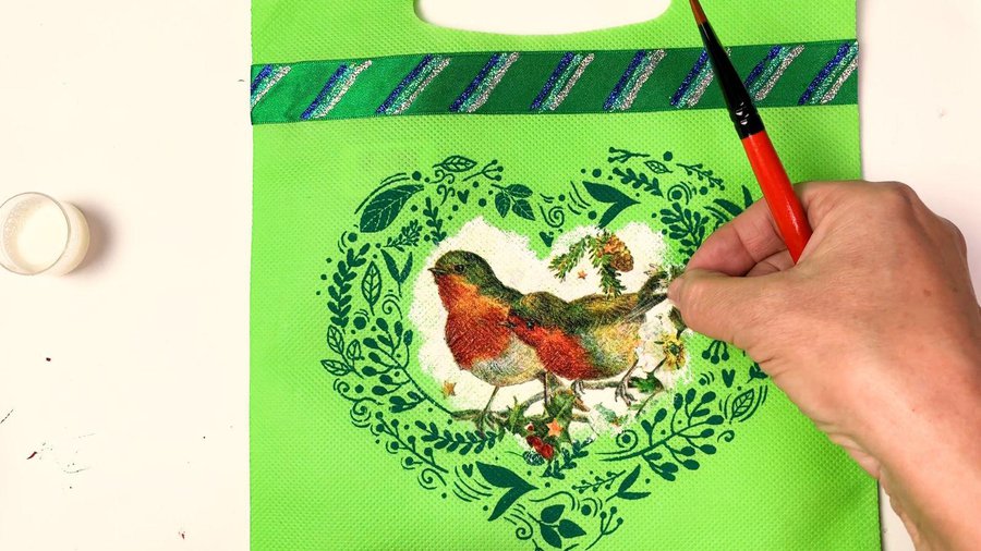 Voy a dejar las ramitas que forman el corazón libres y en el centro voy a hacer un decoupage de éstos pajaritos.