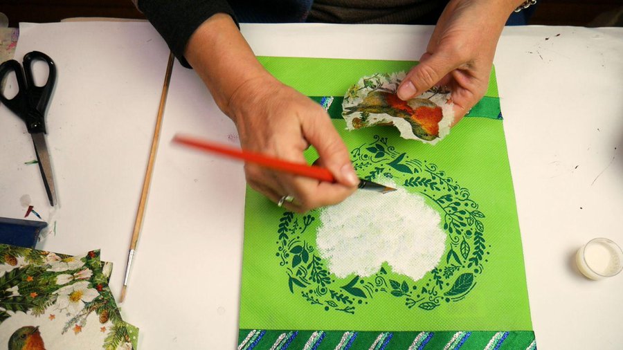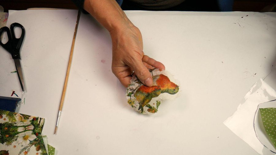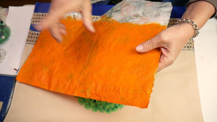 Luego completo las zonas que no quedaron cubiertas con pequeños trozos de la misma servilleta.