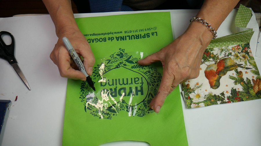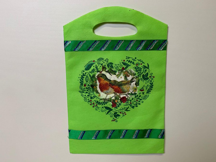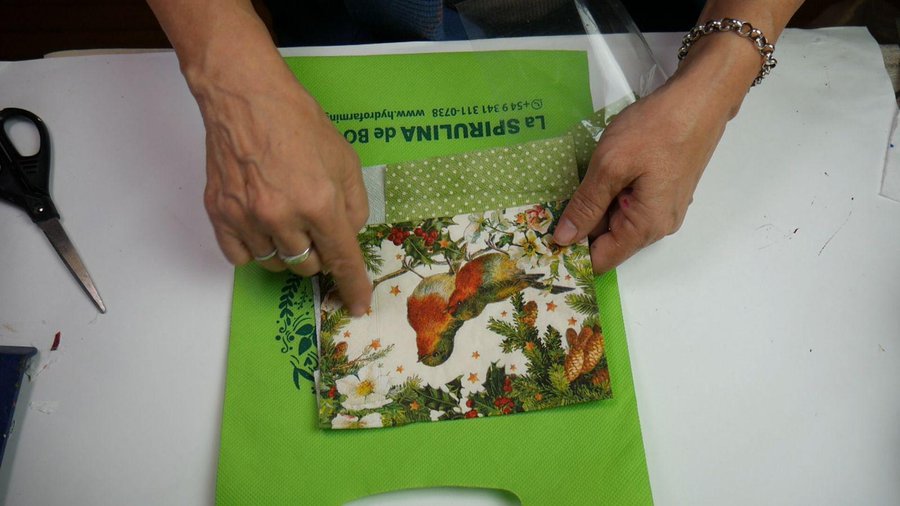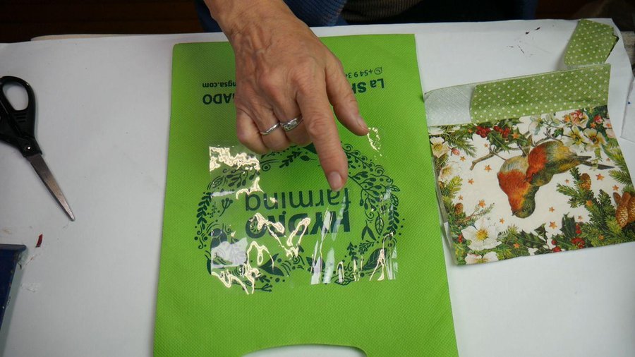Esta bolsa la llamé NAVIDAD. Es pequeña y voy a aprovechar por los colores y el dibujo que tiene para transformarla en una bolsa de NAVIDAD.