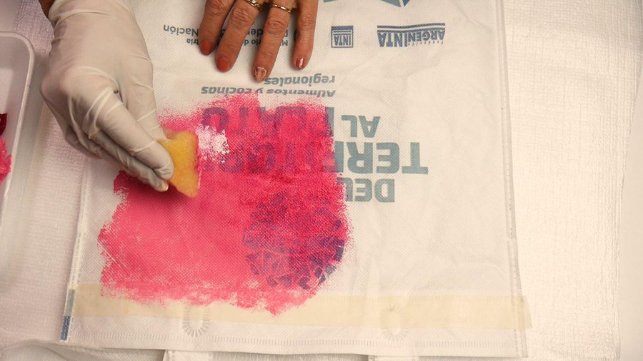 Ustedes guíense por los dibujos que suelen tener éstas bolsas o por los escritos que tienen que tapar. Una vez secas las pinturas retiro la cinta de papel que delimitaba.