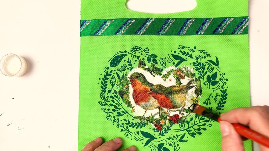 Luego para terminar de dar brillo le hice retoques con glitter rojo y verde para mejorar el aspecto de navidad. Se podría haber colocado también tonos dorados.