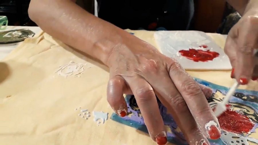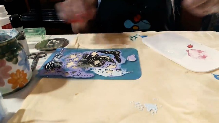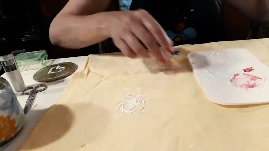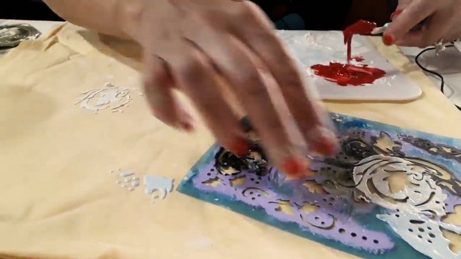 Lo aplico igual que el anterior con espátula sobre un stencil.