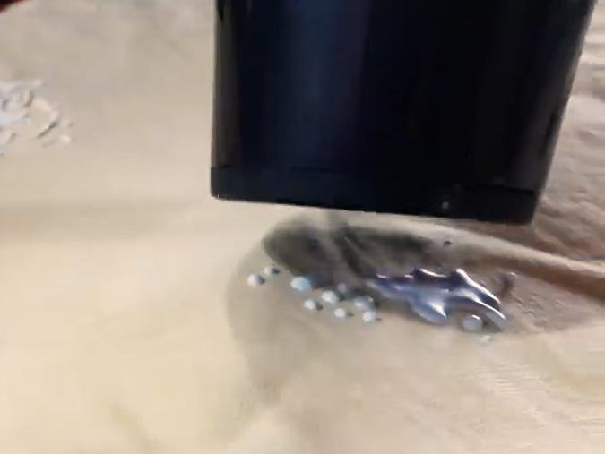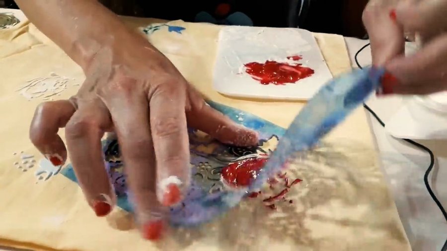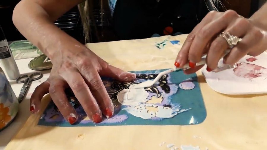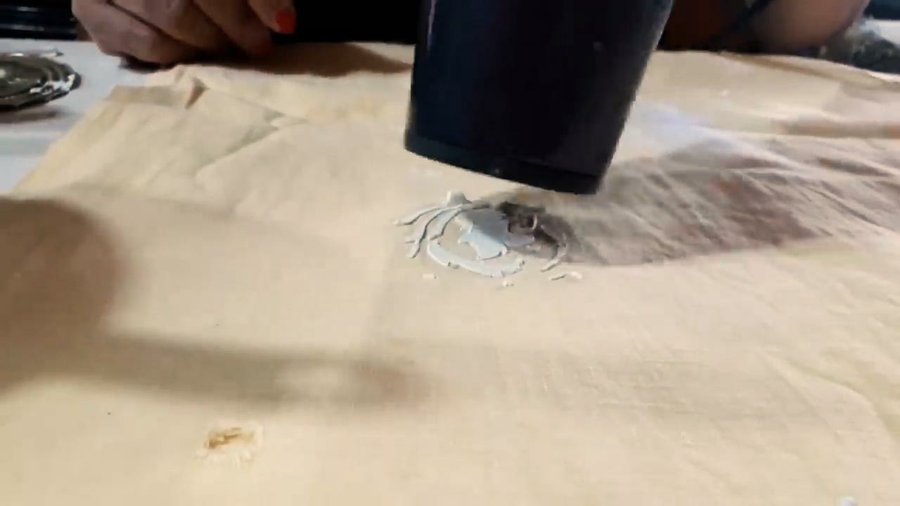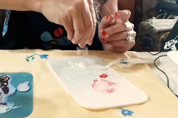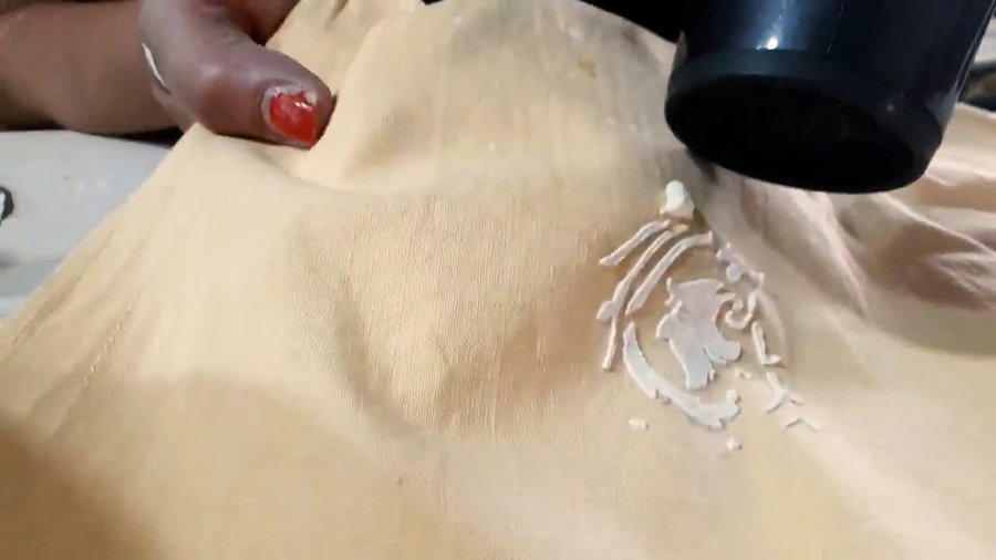 Luego se le aplica calor directo con un secador de pelo para que comience a inflarse y lograr el efecto.