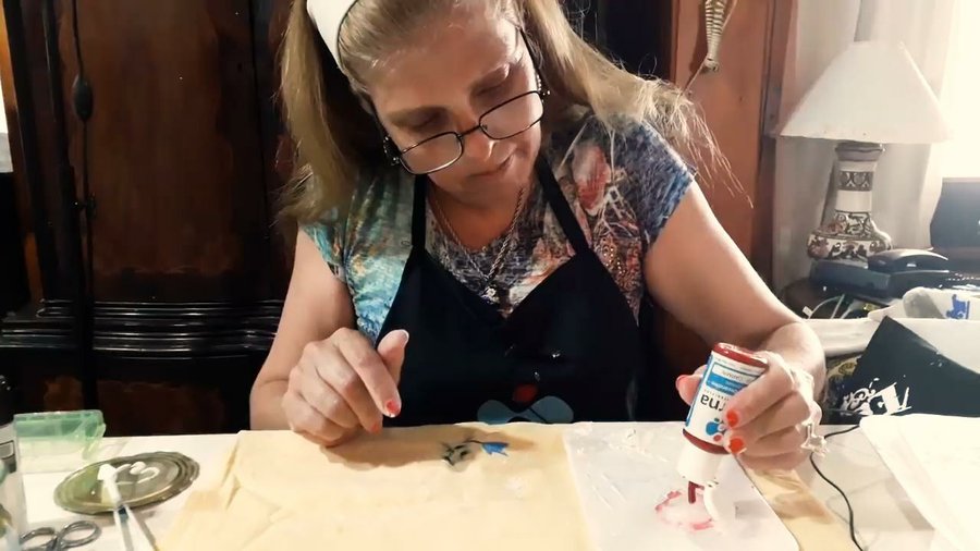 Mezclo todo bien y luego lo aplico nuevamente con el stencil.