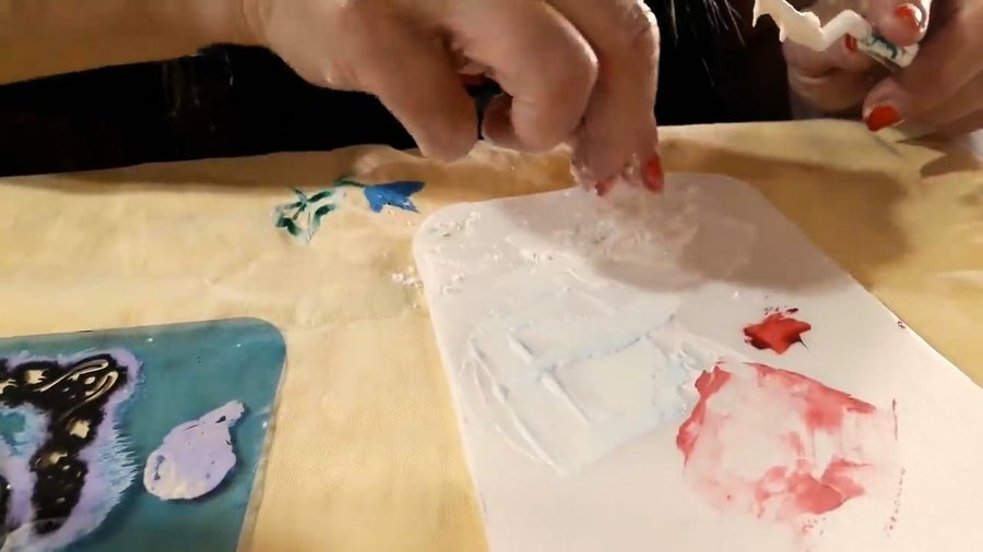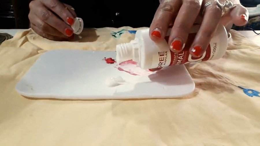 Dimensional CristalCualquier pintura acrílica, en este caso uso rojo que coloco por encima del dimensional.
