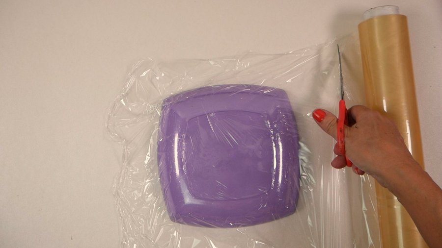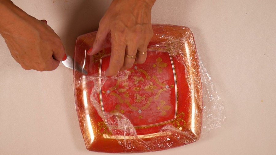 Sobre éste pego 2 capas de film adherente, una por encima de la otra tratando de dejar la menor cantidad de arrugas posibles.