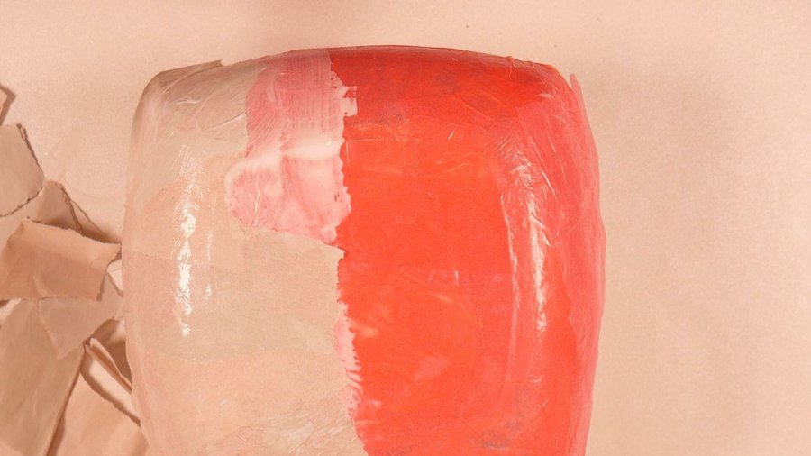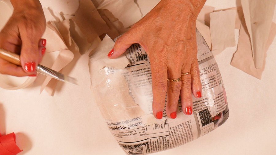 Luego de secar y recortar una capa con papel de diario y luego por encima de éste otra vez papel clarito.