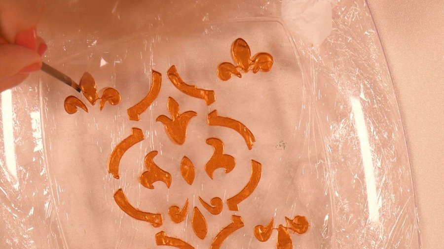 Mientras esta parse se secaba con glitter de 2 colores comencé a hacer un borde guiándome por la marca del plato.