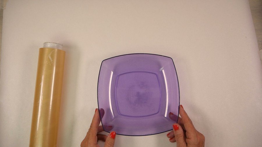 En los bordes dejo caer el papel por debajo por eso es necesario mantener el plato en alto y así el papel no se arruga.