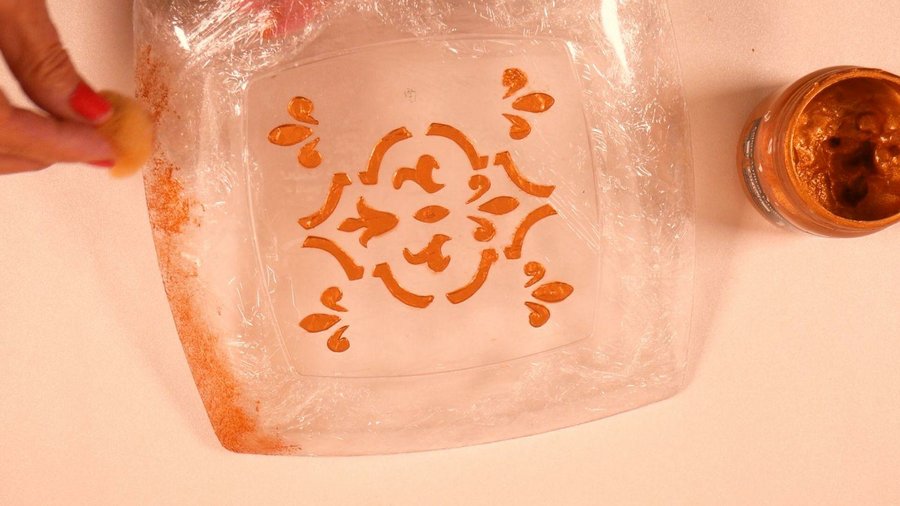 Y la cartapesta con stencil es muy fácil y se realiza así: