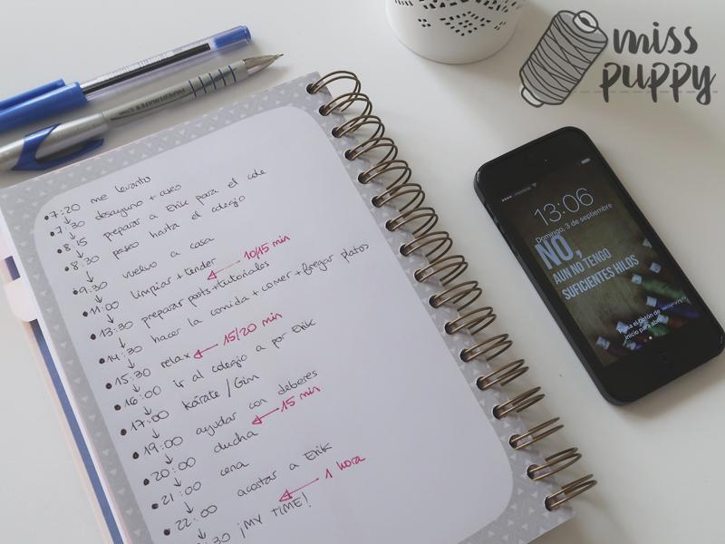 Y una vez hecho esto, se sincera contigo misma y pregúntate de dónde puedes recortar algo de tiempo, aunque sean 20 minutos. Esos 20 minutos pueden suponer el imprimir y cortar unos patrones. Otros 10 minutos que puedas sacar, podrían ser para preparar los materiales que necesitarás, o anotar qué necesitas comprar para, antes de volver a casa, pasar por la mercería.
