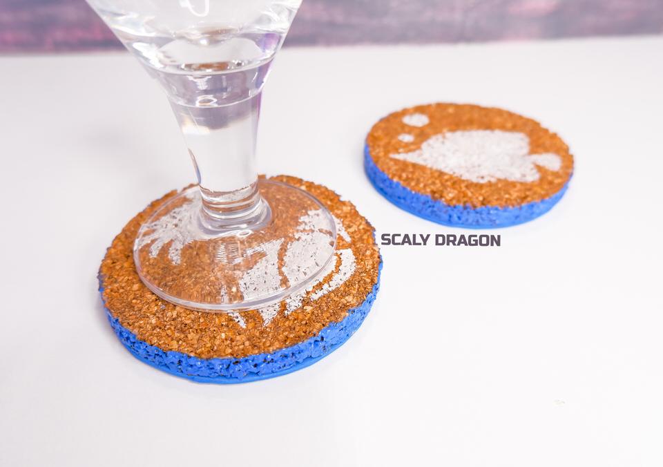 Lo primero que haremos es pintar los bordes de las rodajas de corcho con pintura acrílica en color azul o el color de su preferencia.