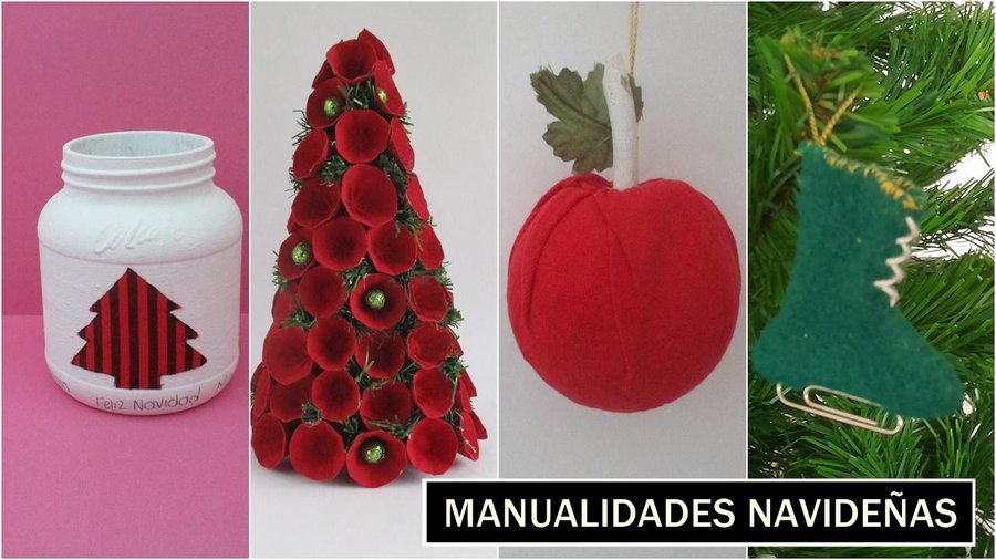 En la foto se ven 4 ideas, en realidad son 5 ideas navideñas con reciclaje.