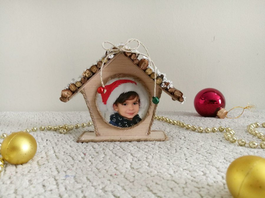 Adorno Nº7: Silicón, Madera Balda, Ramas secas, Una foto, Cuerda, Cordón decorativo, Mini cascabeles, Cola Blanca, Porexpan rallado