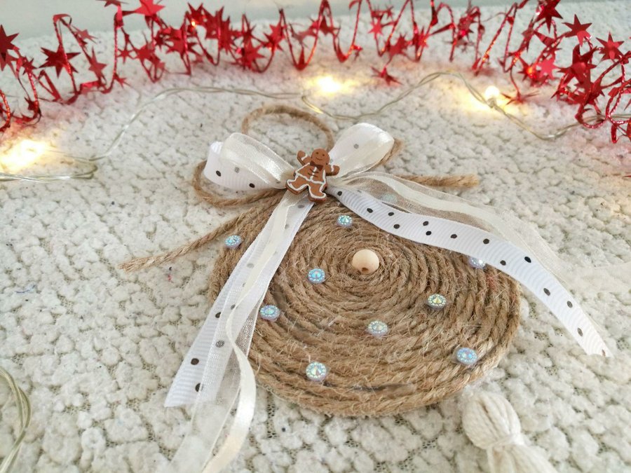 Un adorno que podréis hacer de forma muy fácil, rápida y divertida con cuerda y cintas.