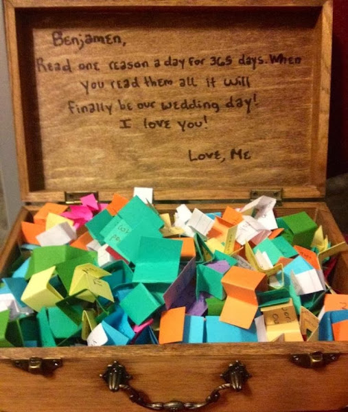 Románticos hoy os traigo un regalo muy especial. Si le vas a pedir matrimonio a tu pareja sorpréndela después con este bonito y romántico regalo. Este regalo os recordará al Libro de "52 Razones por las que te amo", porque es parecido pero aquí vamos a explicar "por qué me caso contigo". (Aunque también podéis hacer este regalo por vuestro aniversario o por San Valentín y titularlo 365 razones por ...