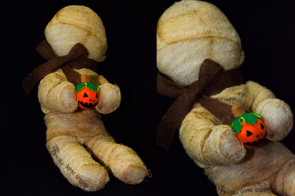 Para darle un nuevo sentido a la momificación he creado este ambientador o momia aromatizaste muy suavesita tipo squishy el cual puedes utilizar como complemento para regalar en halloween.