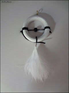 Después se puede decorar al gusto, yo le puse una anilla de cortina ya que era blanca, y plumas.