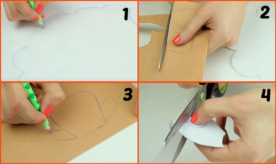 2. Dibuja las patas sobre fieltro marrón y recorta.