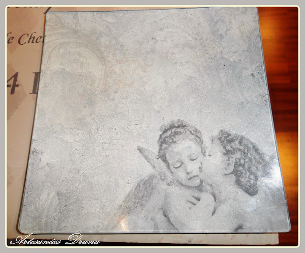 Bandeja de cristal con imágenes vintage, acrílica chalk paint y craquelada en oroPrecio: 12 ?
