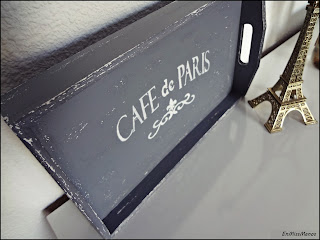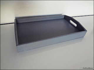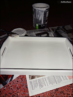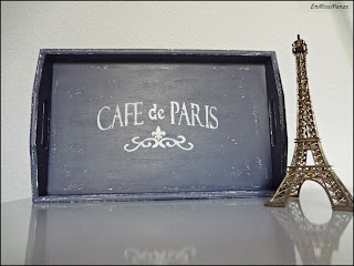 Y como último paso decoré la base con estarcido y lijé sobre todo por los cantos y bordes para darle el efecto gastado.