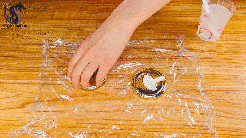 Al primer recipiente le aplicare unas virutas de plástico tipo holográfico