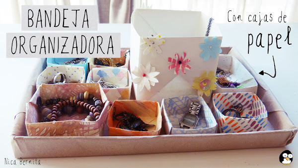 En este tutorial de manualidades creamos una bandeja organizadora de papel y cartón. Se trata de una manualidad muy práctica y fácil de realizar, a la que le puedes dar múltiples usos. ¡Además es muy económica! Para hacer la base de la bandeja he reciclado la tapa de una caja de zapatos y la he forrado con papel de estraza marrón. He optado por un fondo liso para dar protagonismo a las cajitas org ...
