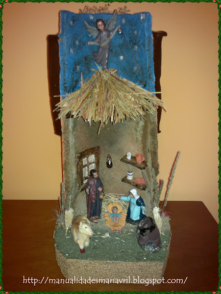 Hola, hoy os quiero presentar mi ultimo trabajo y es este genial belén dentro de una teja, pero para que pasadas las navidades no tengamos dudas de donde guardarlo para que no se rompa o nos ocupe poco espacio, la idea a sido decorar la teja por la otra cara, en este caso con una bonita y original estantería a la que no le falta detalle alguno; y así pasadas la navidades se leda la vuelta a la tej ...