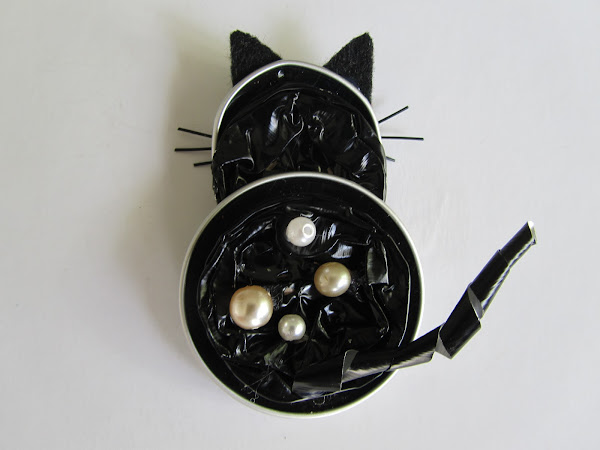 Para la cola, lo que he hecho es recortar una tira de aluminio negro de una de las cápsulas, y enrollarla en un palillo. Después la estiráis un poco y le dais la forma de cola para, finalmente, engancharla. Uso pistola de silicona para enganchar todas las cositas ;)