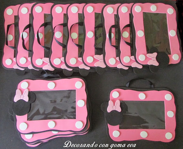 también la pintamos de negro igual que la del Mickey, haremos las orejas redondas con fieltro negro y haremos un corte y pegaremos en la parte plana con silicona una en cada lado, despues con fieltro rojo hacemos una tira de medio centímetro aprox, detrás de la tira hacemos un lazo, será el lacito del vestidito de la minnie, y haremos otro lazo con fieltro rojo para un lado de la oreja y pegamos, en el lazo de arriba le haremos unos puntitos con pintura acrilica blanca .