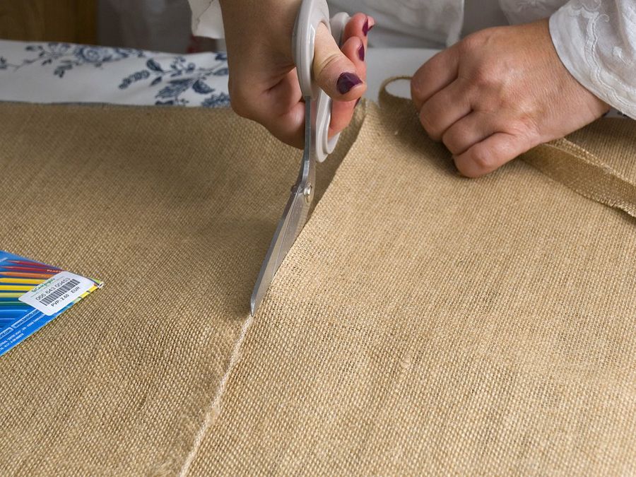 Vamos presentando en la bolsa de arpillera los elementos que componen la figura. Las piernas y el gorro sobresalen, dando un aire dinámico y gracioso a la bruja.