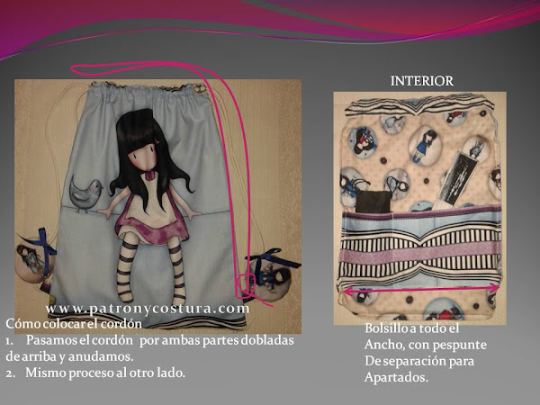NOTA: puedes hacer si lo deseas que por dentro lleve bolsillos para meter objetos (gafas, móvil...); Yo entre ambas piezas, inserté una extra de la misma medida y a esta parte le agregé bolsillo amplio con pespunte separatorio, para llevar más ordenado: