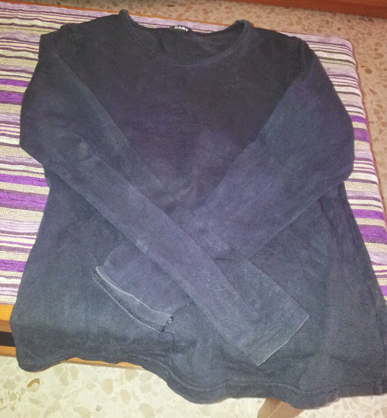 Aquí empiezan ha llegar "las calores" del verano, indicador de que es hora de guardar la ropa de invierno y sacar las prendas más fresquitas. Y para no abarrotar tanto los altillos, me gusta deshacerme de las prendas que ya no uso, bien porque me quedan pequeñas o bien porque están desgastadas como esta camiseta de manga larga que solía ser de color negro. Con el calor, tendemos a llevar el pelo r ...