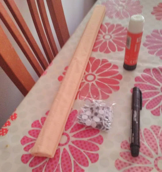 Finalmente le he pegado unos ojos y le he dibujado una nariz y boca, con el rotulador