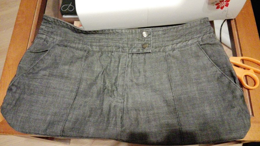 He cogido una bermuda, tipo vaquera y la he cortado por debajo de la entrepierna..