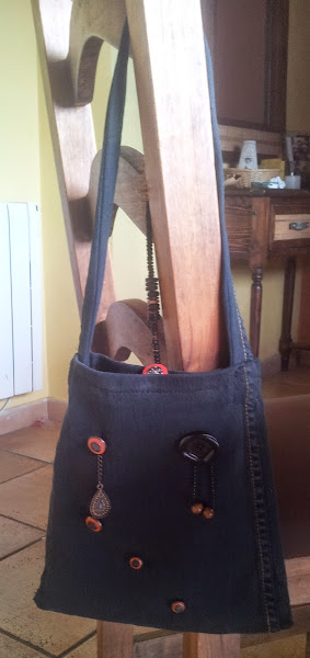 Después de un parón.... vuelvo con más fuerza. Os traigo un bolso que he realizado con unos viejos tejanos que tenía por casa.