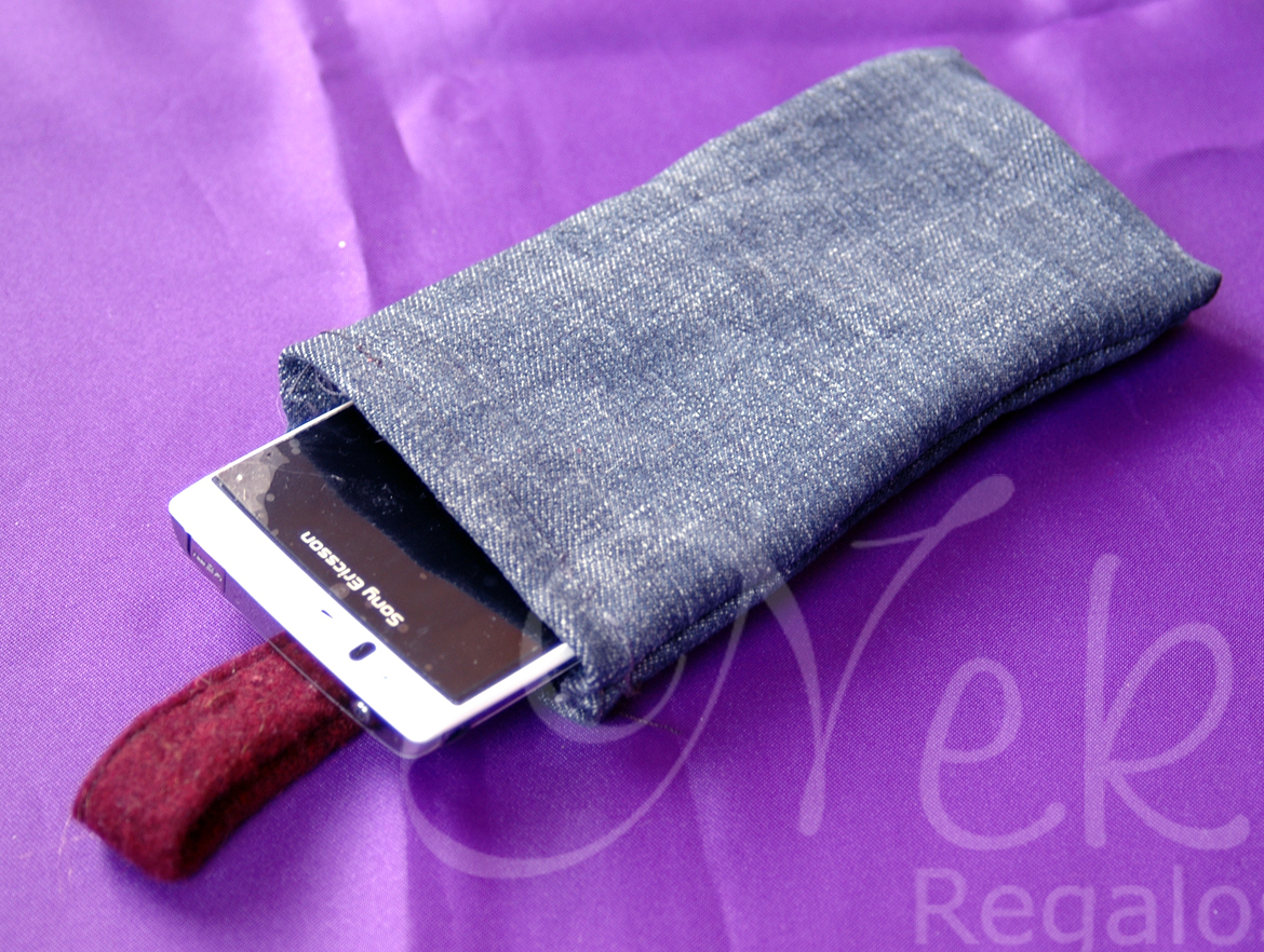 Funda vaquera para el bolso con una cinta para encontrarlo rápidamente.