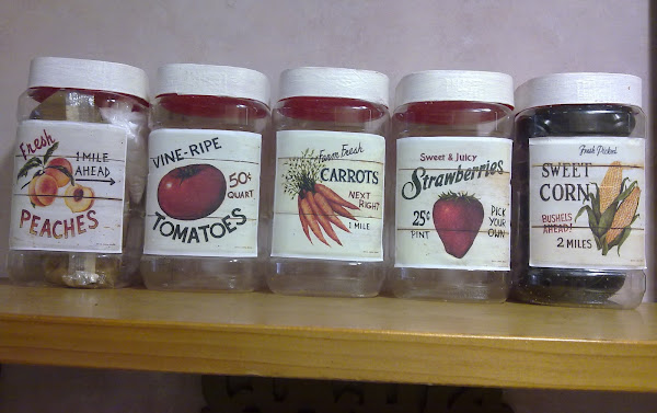 Hola,cada vez me atrevo a hacer màs cosa con decoupage,ahora he terminado con unos tarros de cocina,algo sosos y que han cambiado totalmente:La culpa esta vez es por unas cortinas que comprè para la cocina y a los pocos dias vi unas servilletas con la misma decoracion que las cortinas y me dijeporquè no?. Tuve que lijar primeros los botes,que no he dicho que son de plastico dur ...