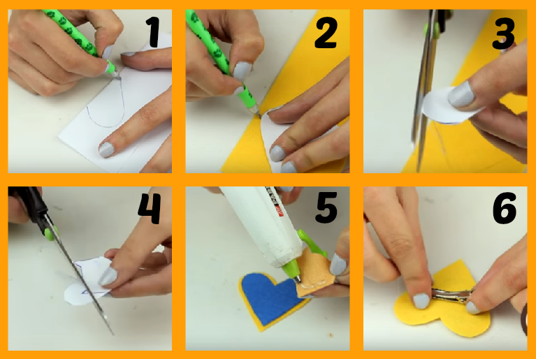 2. Ponemos nuestra plantilla en el fieltro amarillo y lo marcamos con boli para después recortarlo.