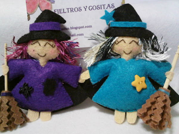 Estas dos brujillas de fieltro ya están en su nueva ciudad dispuestas a ser lucidas en la solapa de sus futuras dueñas, espero sean de su agrado