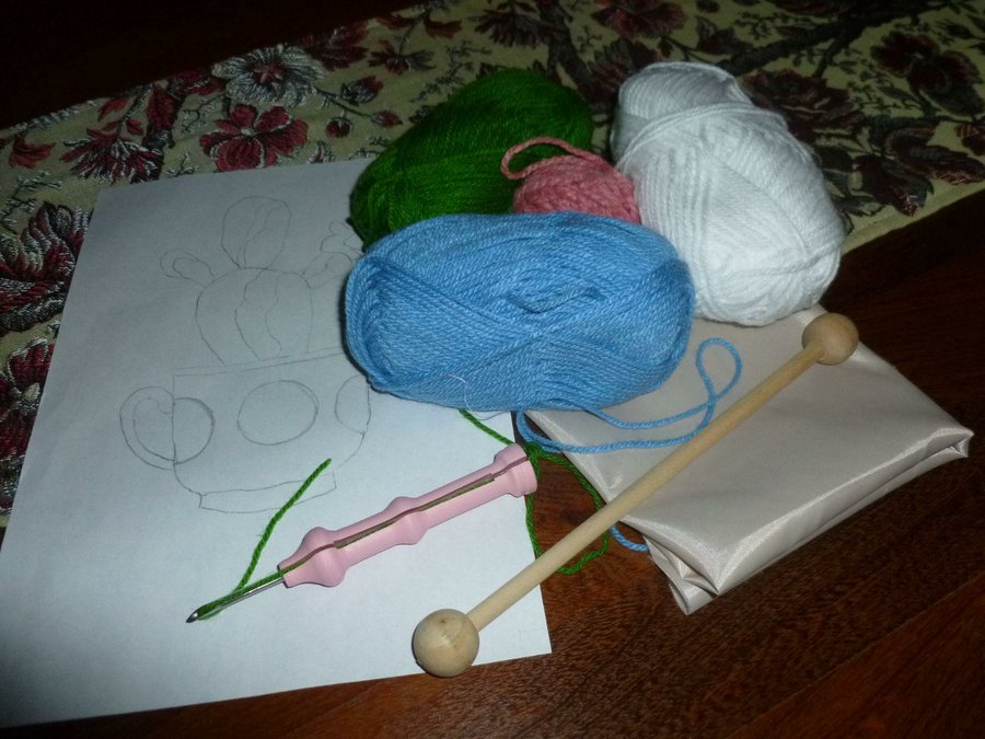 Materiales = arpillera, lanas , decoaguja, tafeta.