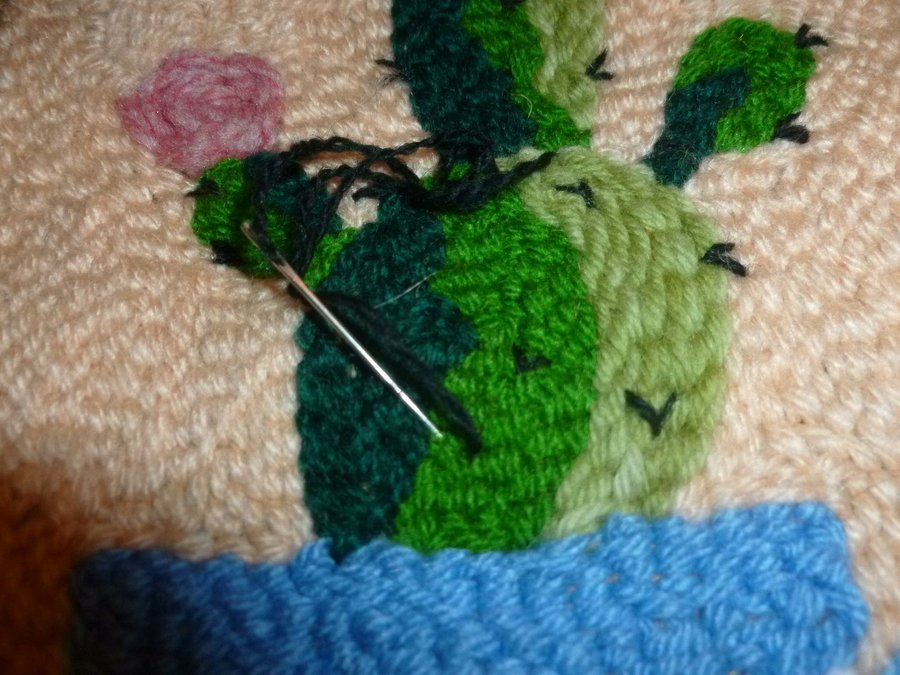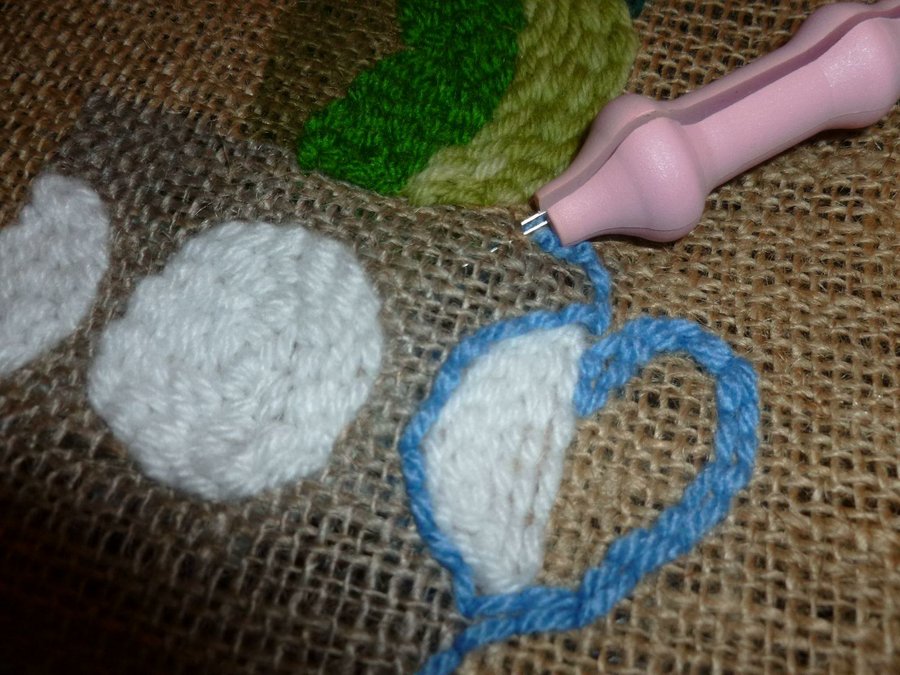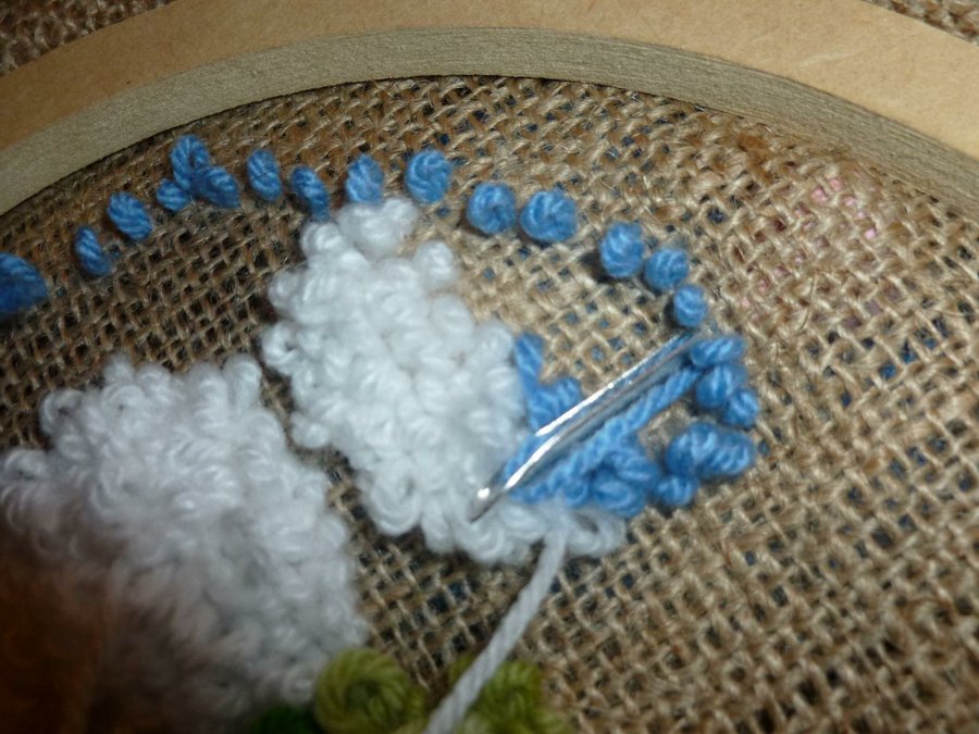 Bordado = enhebramos la aguja con lana, pinchar, pasar la lana para atrás.
