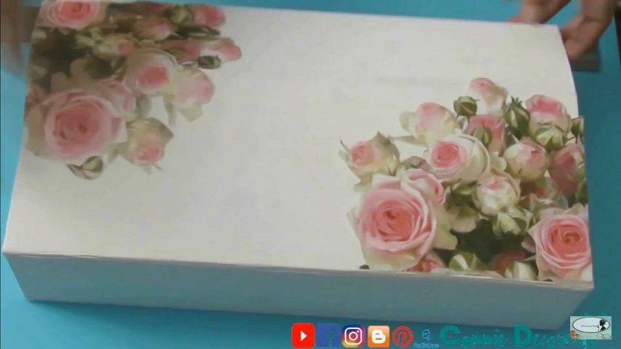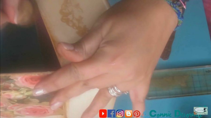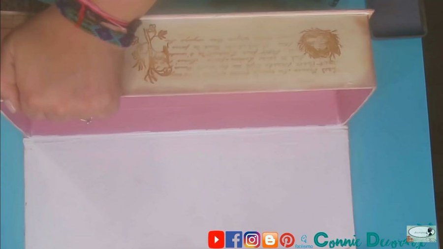 usaremos un stencil el cual lo puedes hacer tu mismo, lo pondremos en la mitad de la caja y aplicaremos masilla de manualidades o de resanar pared (ver vídeo)