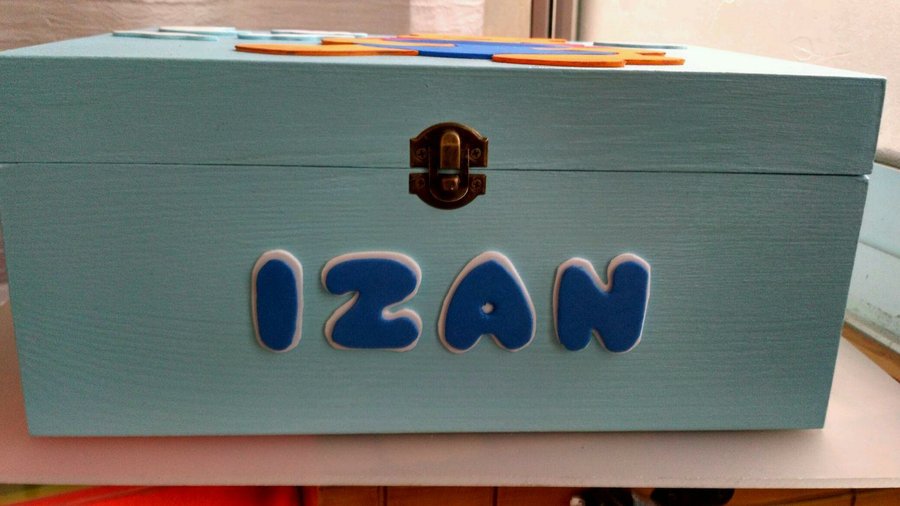 La caja la he pintado en un celeste pastel, ya que es para un bebé y no quería ponerle colores oscuros.