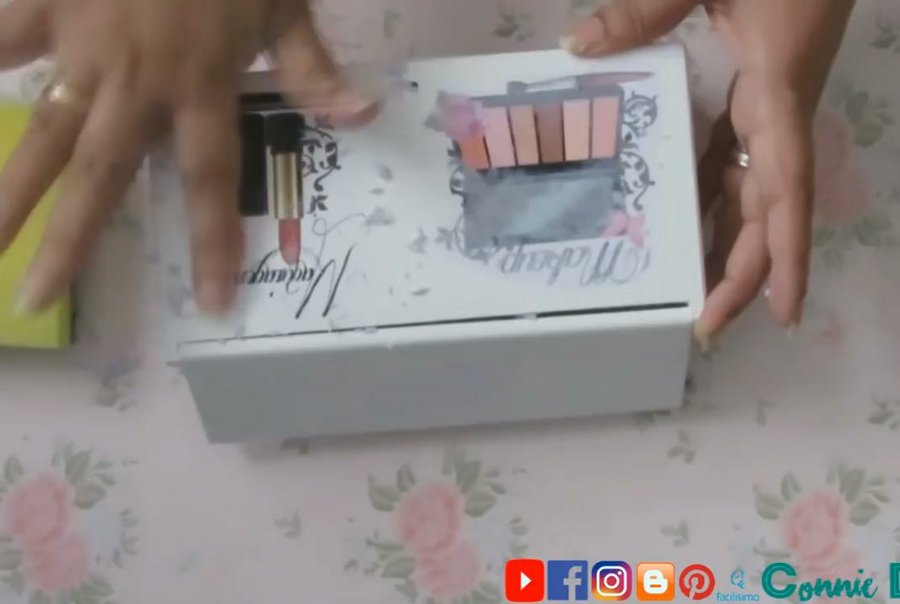 ahora haremos una sombra alrededor de toda la caja, con l tinta rosa perlada o con el color de su elección