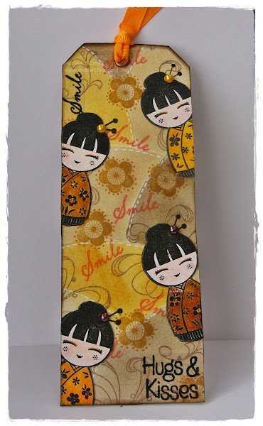 El resto de adornos son sellos del mismo set que la Kokeshi, a excepción, claro está, de la pluma, que es un charm :)