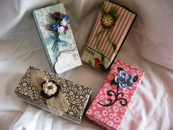 La verdad me encantan las cajitas, tanto hacerlas como comprarlas y tunearlas es algo que siempre me ha encantado, cuando hago algún álbum, camiseta..... siempre tengo que entregarlas en su cajita correspondiente, es superior a mi ,no tengo remedio. La verdad no tengo fotos de todas las cajas que he realizado pero bueno tengo algunas y no se por qué pero me apetece compartirlas con vosotras haber ...